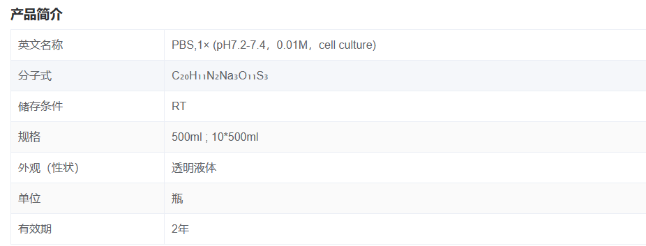 PBS(phosphate buffered solution)即磷酸盐缓冲液,能够提供相对稳定的离子环境和pH缓冲能力,是生物学中经常使用的缓冲盐溶液,用于分子克隆及细胞培养等,pH为7.2-7.4,与人体血液等渗,主要成分为磷酸二氢钾、磷酸氢二钠、氯化钠以及氯化钾。